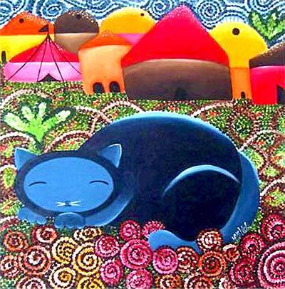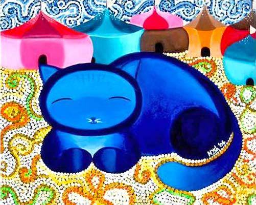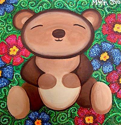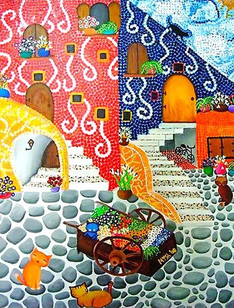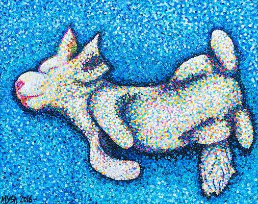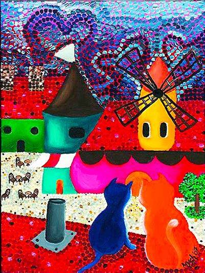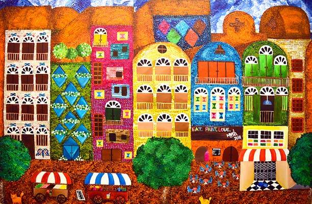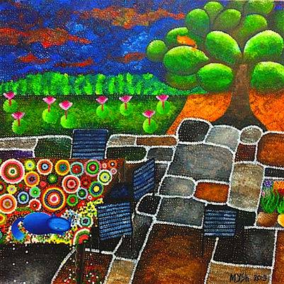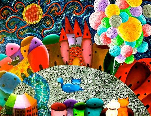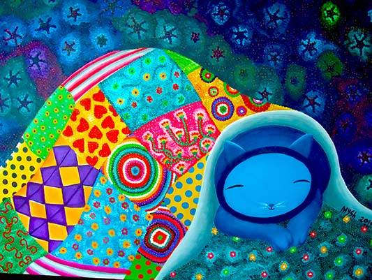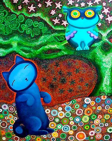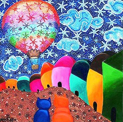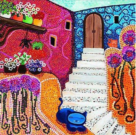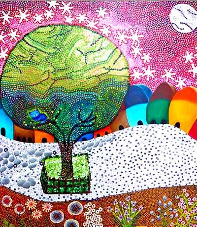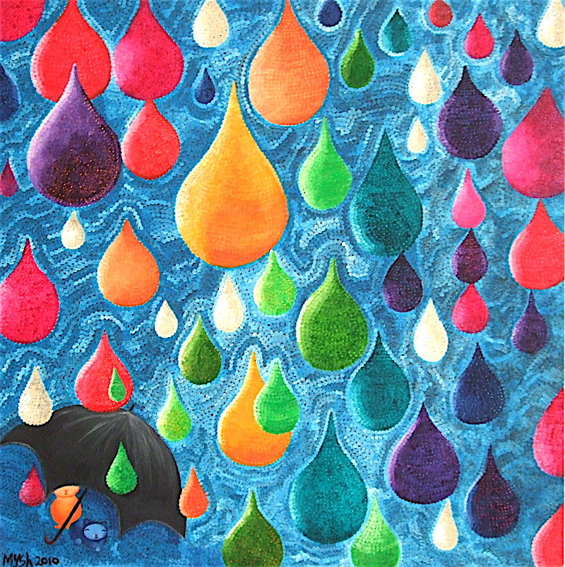I have a simple approach to life and Art – Be happy; a state so hard to achieve but it must be so. With every dot, every painting that I’ve created, I strive towards a feeling of contentment. – Michelle